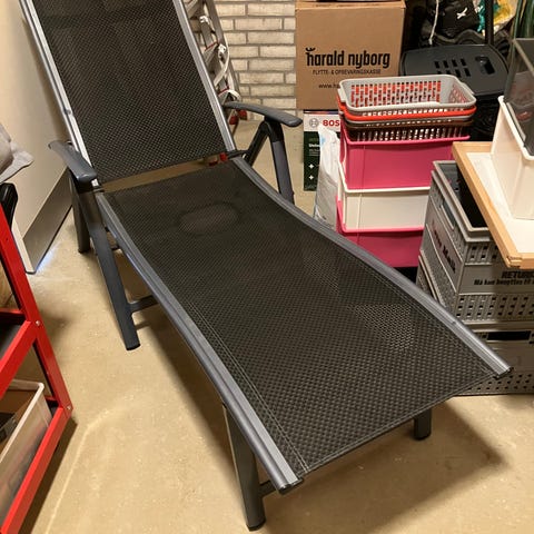 Liggestol, Liggestol med 7 positioner med hynde til "gør det selv projekt" skal slibes og males for rust stellet er robust nok til det