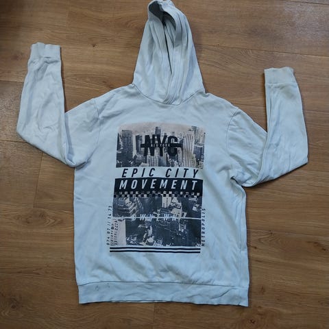 Sort/blå/hvid hættetrøje i str. 158/164 12-14 år