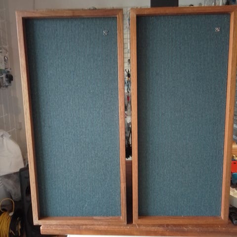 Basenhederne, den ene mellemtone og delefiltrene er renoveret. Kabinettet har fået en smule fugt og den hvide folie er ikke pæn. Frontgitre og stof er helt ok. Alle enheder er originale. Der medfølger ikke gulvstandere. De kan selvfølgelig høres før køb.