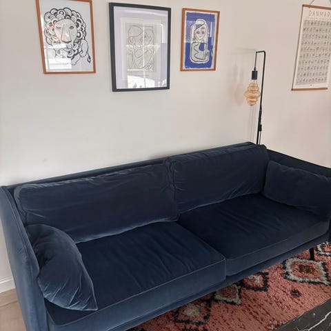 Rigtig fin og velholdt 3 pers. Lotus sofa fra Ilva. Blåt stof og ben i hvidolieret eg. Købt i 2021. Fra dyrefrit og parfumefrit hjem. Sofaen kan renses inden køb, hvis det ønskes. Sofaen kan leveres, hvis du bor i nærheden af Ølstykke eller Glostrup.