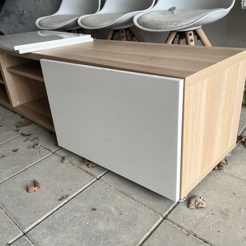 Sælger dette IKEA TV bord. Jeg har sat et billede fra hjemmesiden ind også, ny pris 500kr. Mit har dog lige en lille revne på bordet, som vist på billedet - det er ikke slemt.