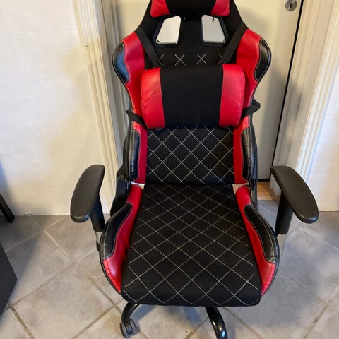 Noblechairs gamingstol med kombination af stof og kunstlæder i grå og sort. Stolen har høj ryglæn med integreret nakkestøtte, polstret sæde og justerbare armlæn. Velegnet til brug ved skrivebord eller gaming-setup.