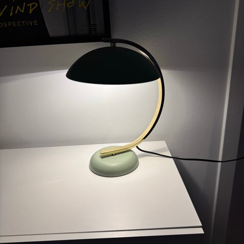 Fin bordlampe fra Søstrene Grene. Sart lyserød. B:23 H:35. Afhentes i Hillerød C. Hurtig afhentning prioriteres.
