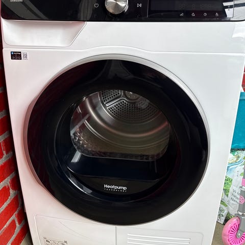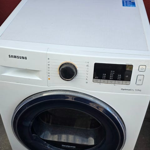 Samsung tørretumbler. Frontbetjent model med rund låge og betjeningspanel nederst. Velegnet til tørring af tøj og tekstiler i husstande. Yderligere specifikationer som kapacitet, energiklasse og modelnavn fremgår typisk af typeskilt eller manual. MEGET LIDT BRUGT NÆSTEN SOM NY