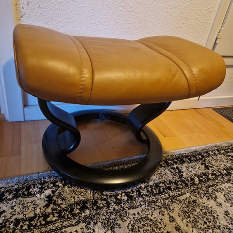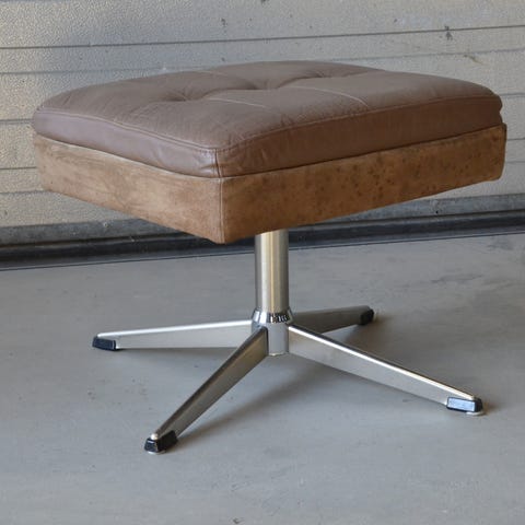 Velholdt Hjorth Knudsen fodskammel i enkelt og tidløst design med ægte sort læder og kromstel, skråtstillet sæde med god komfort og ergonomi