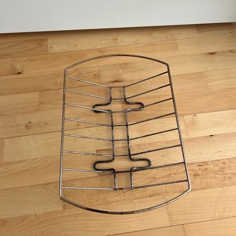 Baker Grill stegholder i metal. Stegholderen er udformet som en kurv med bøjler, der holder stegen på plads under tilberedning i ovn eller på grill. Velegnet til fx steg, kylling eller andre større kødstykker, så varmen kan cirkulere rundt om emnet. Let at placere i bradepande eller direkte på grillrist og kan rengøres efter brug.