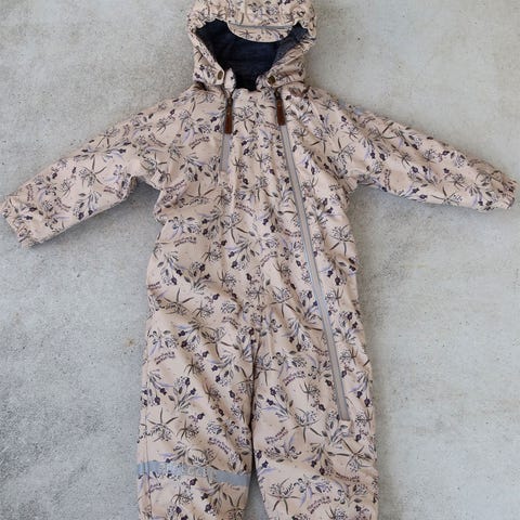 Mikkline PU gummi flyverdragt med dejlig varmt foer. Str 116 næsten ikke brugt da hun voksede ud af den inden kulden kom i gang.