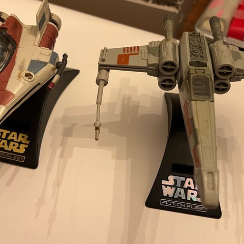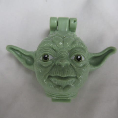 Star Wars Micro Machines figursæt. Sættet består af fem små figurer formet som hoveder af forskellige Star Wars-karakterer, der kan åbnes og indeholder små indre scener med faste figurer. Figurerne er i hård plast og har forskellige farver og detaljer. Egnet som samlerobjekt eller som legetøj til børn, der kan lide Star Wars-universet og miniaturefigurer.