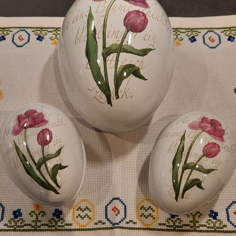 PÅSKEÆG I PORCELÆN OG METAL ,MED BLOMSTERMOTIVER !!