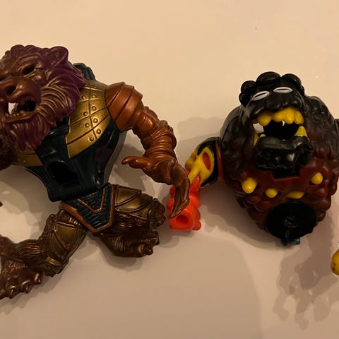 Sæt med flere actionfigurer i plastik. Figurenes design er inspireret af superhelte og skurke, i forskellige farver og størrelser. Der medfølger desuden en løs kørestol som ekstra tilbehør. Egnet som legetøj eller til samling og leg med actionfigurer.