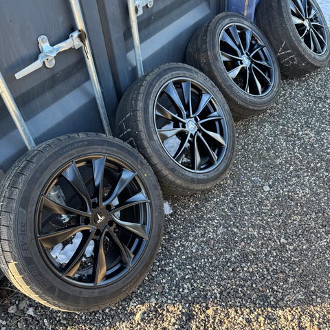 Sælger mine Originale Tesla model Y fælge med vinterdæk, perfekt til denne vinter og den kommende sommer (der medfølger sommerdæk)