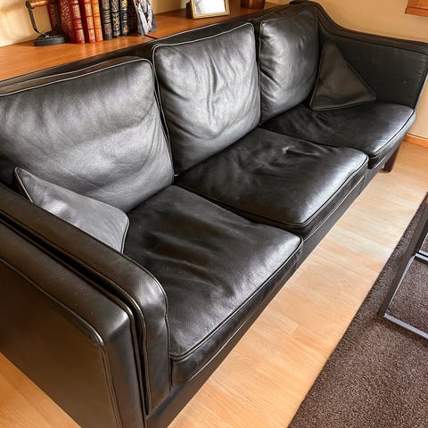 Model 2209 Børge Mogensen / Fredericia Stolefabrik /Furniture. Mål: H. 86/44. L. 185, D. 80 cm. Brun lædersofa 3 personers. Ryghynder og sædehynder i originalt læder. Nyt fyld i hynder i 2023 fra Nortex (6.800 kr.). Ramme og ben i træ. En velholdt klassiker, som kun har stået i et hjem.
