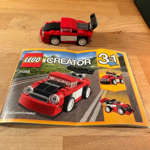 Lego Creator bil byggesæt i rød farve. Sættet består af klodser til at bygge en sportsbil samt tilhørende byggevejledninger til flere modeller i Creator 3-i-1 serien. Velegnet som byggesæt til leg og som supplement til andre Lego Creator sæt.