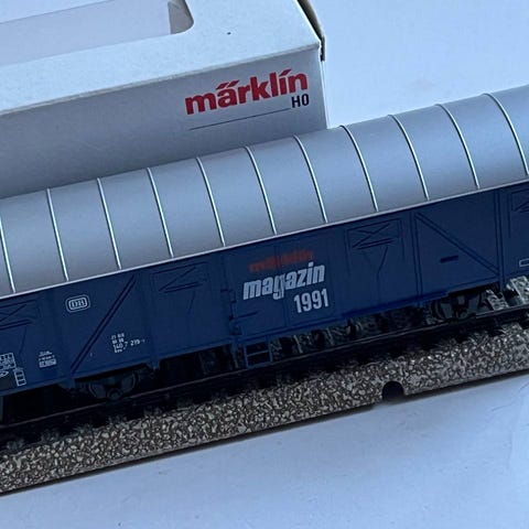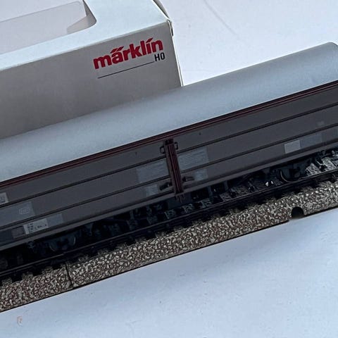 Uhyre velholdt Märklin 4833 "Zuckermühle Rupperswil A.G." godsvogn med skydedøre sælges i original emballage med plastindmad intakt.