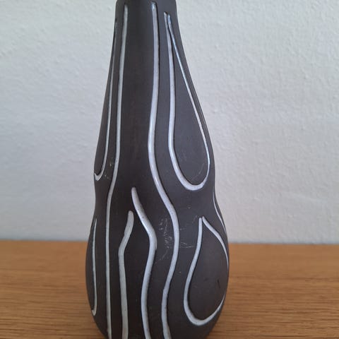 Jeg rydder op og sælger her min lille samling af Helge Østerberg vaser. De er fra 7½ til 15½ cm høje - alle med indridset Ø i bunden (Helge Østerberg). Den kugleformede har et lille hak i kanten (se sidste billede) - ingen andre skader