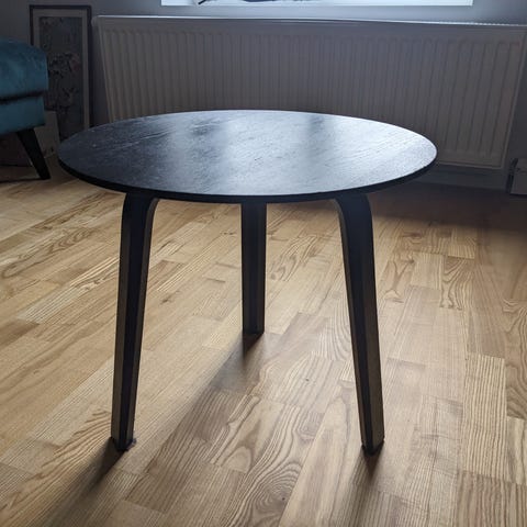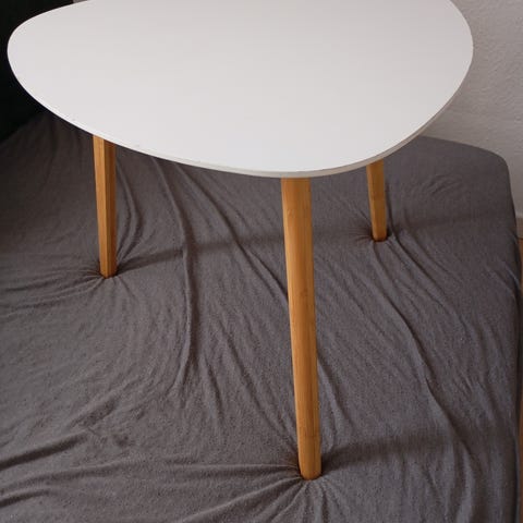 Har et større bord, der følger gratis med hvis det ønskes. Dette bord har skader i bordpladen.
