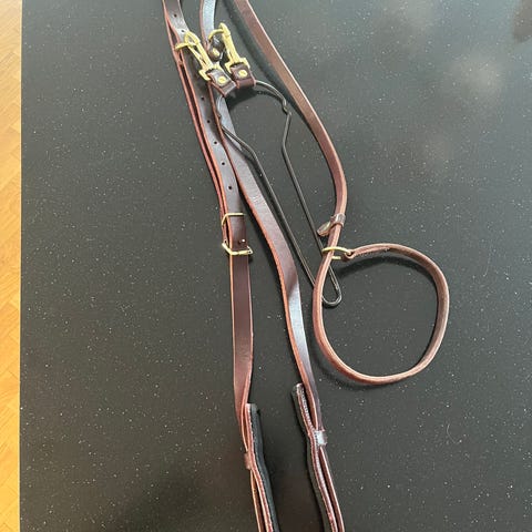 Schweisshundeline, halsbånd og bringsel minimal brugt. Alt er i lækker læderkvalitet.