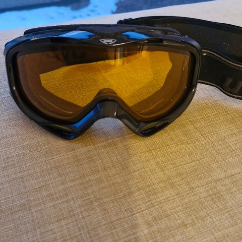 Uvex junior skibrille i hvid med orange glas. Brillen har elastisk, justerbar rem med mønster og Uvex-logo. Skummet omkring rammen giver komfort mod ansigtet.