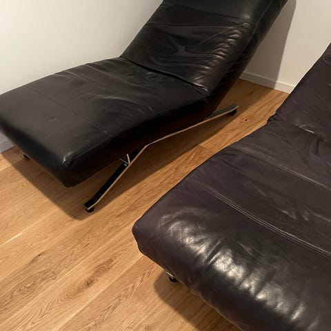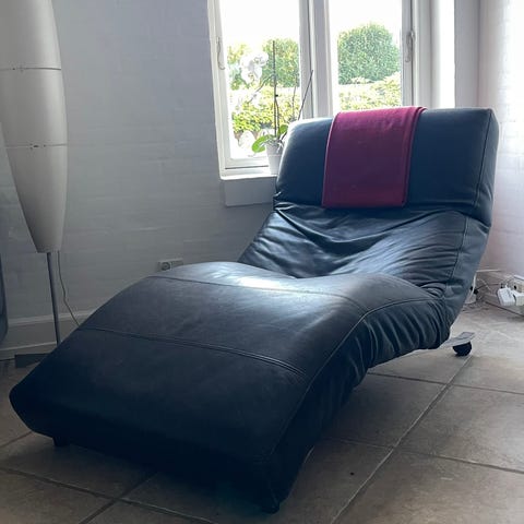 Sælger en elegant og komfortabel chaiselong / daybed fra Eilersen, udført i sort ægte læder og med stel i stål. Et tidløst møbel i klassisk dansk design, der fungerer både som loungestol, daybed eller ekstra liggeplads.
