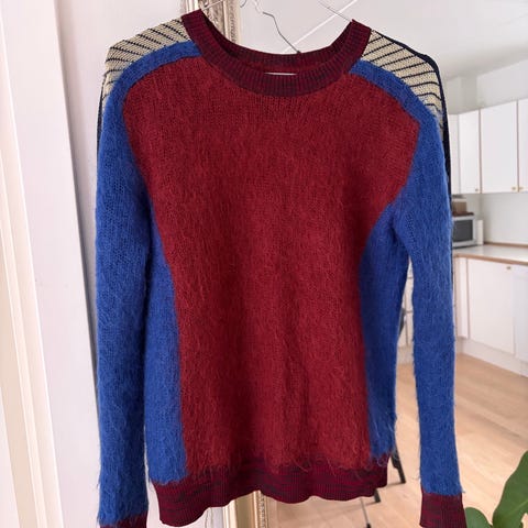 By Malene Birger sweater til kvinder i størrelse M. Strikket sweater i uld i sort med lyse kontraststriber på ærmer og nederst på kroppen. Ribstrikket struktur og høj hals. Velegnet som varm overdel til hverdagsbrug.
