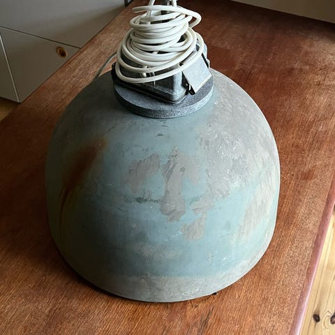 Super lækker københavner lampe i lys grå. Den har været brugt som loftslampe, så der er kort ledning på, men kan skiftes. Måler Ø38cm og ca 25cm i højde. I perfekt stand og fra ikke-ryger hjem. Nypris 2000kr. Kan leveres i Skive og sender gerne.