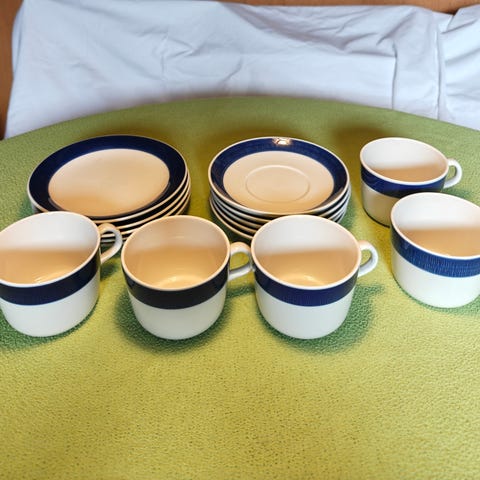 KOKA kop med underkop hvid/blå porcelæn - 10 stk.