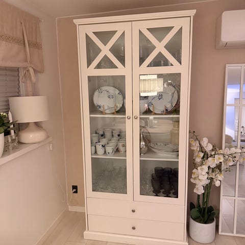 Velholdt vitrineskab i rustikt design købt fra Direkte Import for 10 år siden.