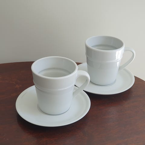 Herstal kaffekop med underkop hvid porcelæn