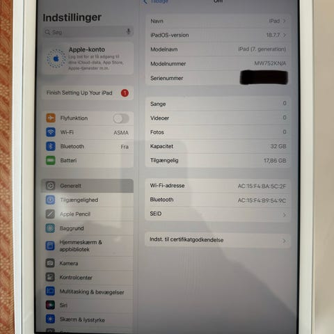 Sælger 1 stk. iPad 7. generation 2019 (32 GB) i god stand. Fungerer perfekt og er oplagte som børne-iPad.