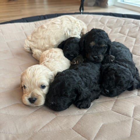 Sammen med dette kuld har vi også et kuld goldendoodle, som er 6 dage yngre. Dette har vi tidligere god erfaring med.