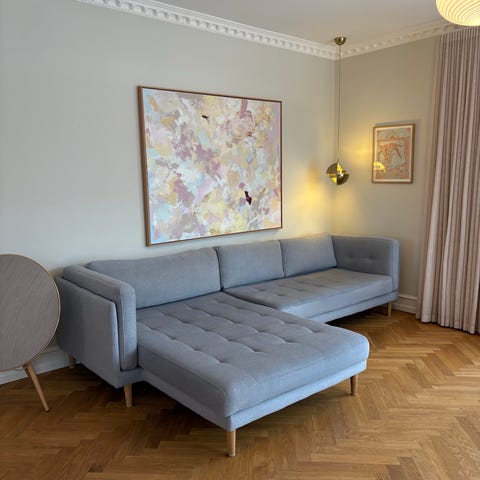 Vi sælger vores fantastiske fine chaiselongsofa, da chaiselongen desværre vender forkert i vores nye stue, men den er dejlig stor og bred med plads til 2 personer på chaiselongen!