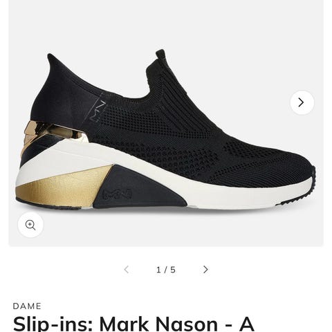 Skechers Mark Nason sneakers i str. 39 med Kilehæl. Farve hvid og slip-in model. Skoene har let, mønstret ydersål og detalje i sølv ved hælen. Er aldrig brugt.
