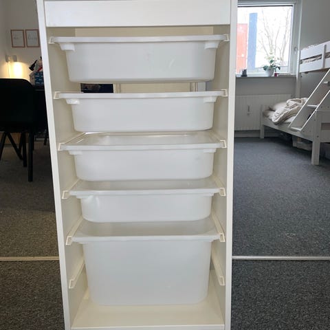 Trofast børnemøbel opbevaringsreol med blå plastkasser