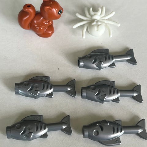Salg af hvide Lego hajer og sværdfisk