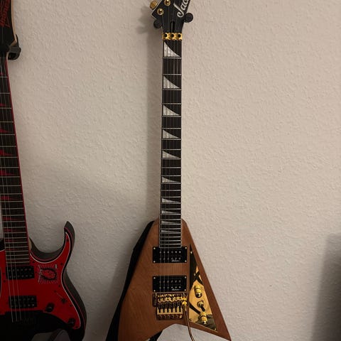 Guitaren kommer med flightcase og er nyligt sat op med 10-52 en tone under standard. Den kan hurtig stemmes op og det kræver umildbart ikke en ekstra justering af guitaren.