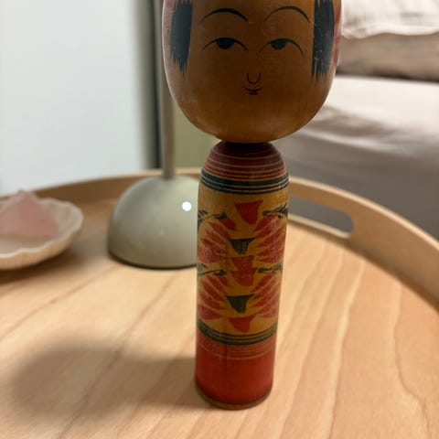 Monchhichi dukke klædt i traditionel kimono. Dukken har brun pels og bærer en rød mønstret kimono med bælte og sløjfe bagpå samt matchende hårsløjfe. Egnet som samlerobjekt eller legetøjsfigur til børn og voksne, der kan lide japansk inspirerede figurer.