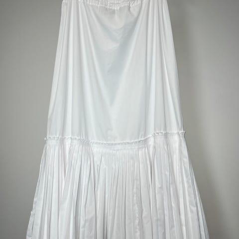 Ralph Lauren nederdel til dame i str. 34. Nederdelen er beige og fremstillet i bomuld. Modellen har en let A-form med læg foran og går til cirka over knæet, afhængigt af højde. Velegnet til hverdagsbrug eller mere formelle anledninger afhængigt af styling.