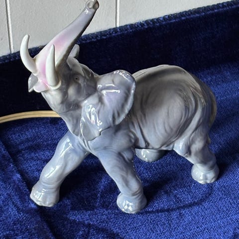 8. Rigtig fin ozon lampe i porcelæn af en elefant med fatning og pærer sælges for 250,00 kr. Den er 17 cm høj, 20 cm lang og 11 cm bred. Fremstår hel og fin uden afslag.
