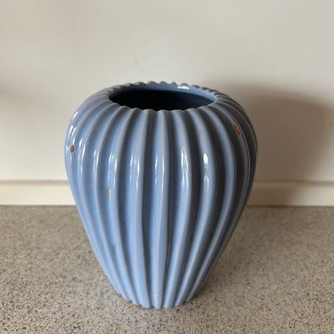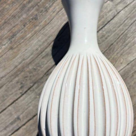 Klassisk dansk keramik, fin , hvid Eslau vase med riller i flot stand. Små krakkeleringer indvendig. Overhovedet ikke synligt udvendig.