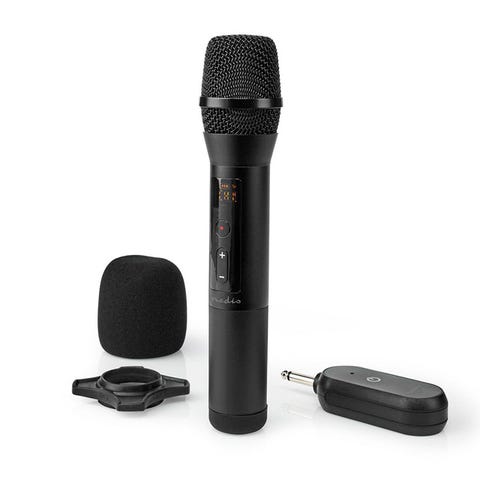 Inkluderet: 2 håndholdte mikrofoner, modtager, batterier og adaptere