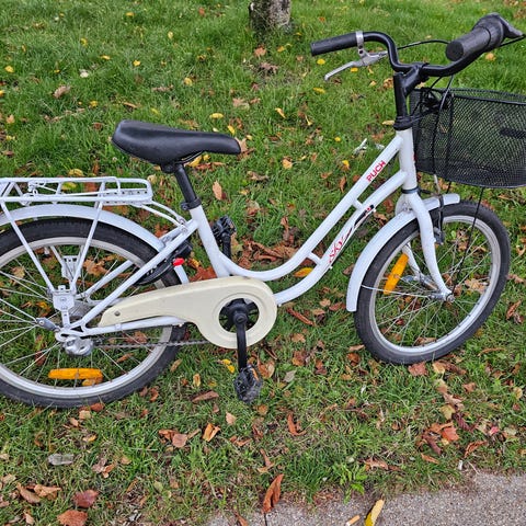 Kronan bycykel til unisex med stelstørrelse L og 20" hjul. Cyklen har lav indstigning, kurv foran og bagagebærer bagpå, egnet til daglig transport i byen. Sadlen er polstret for øget komfort, og cyklen er udstyret med skærme og støtteben, hvilket gør den praktisk til hverdagsbrug.
