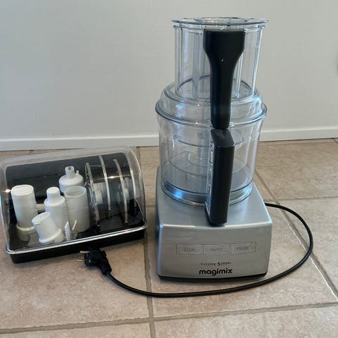 Magimix Cuisine 5200 XL. Kun brugt meget begrænset i et par måneder. Der følger alle snitteplader, to str blenderskåle og appelsinpresser med. Kniven til den store blenderskål mangler - prisen er sat derefter (kostede 3000,- fra ny).