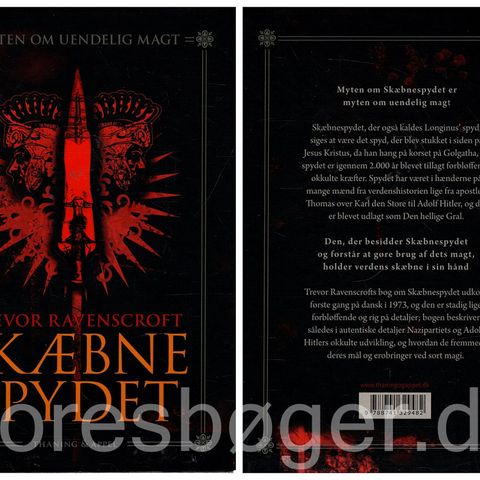 Trevor Ravenscroft Skæbnespydet bog. Dansk udgave af en faglitterær/okkulthistorisk bog med titel "Skæbnespydet" af forfatteren Trevor Ravenscroft. Velegnet til læsere med interesse for historie, mystik og okkulte emner.