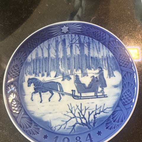 Bing & Grøndahl Juleplatte Julen i stalden porcelænsplatte blå hvid