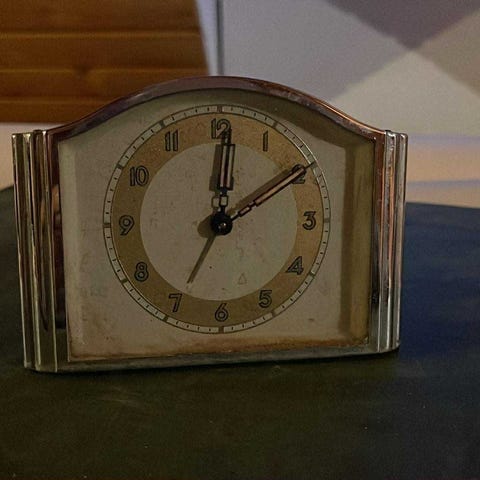 Flot og dekorativt bordur i retro stil formet som en cykel. Vintage urskive med *Grand Hotel Paris*-look. Fungerer som det skal og er i god stand.