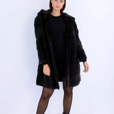 Hellang pelsfrakke af plukket mink. Lavet af sorte hunmink, meget blød, fin og elegant. Kan ses i Aalborg. Kan sendes. Byd