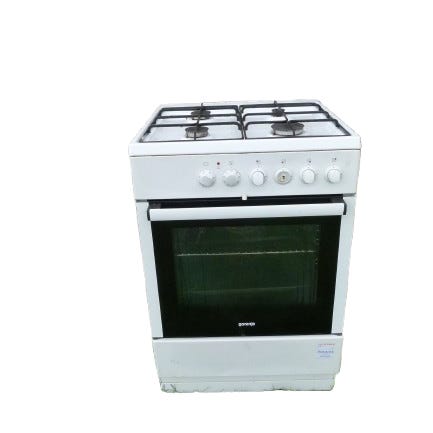 Gorenje gaskomfur i hvid. Komfuret har gasblus på toppen og integreret ovn. Fronten er udstyret med drejeknapper til regulering af både blus og ovn. Egnet til almindelig madlavning i køkkenet, hvor der ønskes gas som varmekilde til madlavning. Er gammelt, men virker som det skal. Afhentes gratis på anden sal.