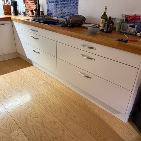 Svanekøkken fra 2004 sælges. Opvaskemaskinen er nyere og standen er generelt fin. Massiv egetræs bordplade. Man skal selv pille køkkenet ned og man skal tage det hele med :-) skal hentes sidst i uge 8.
