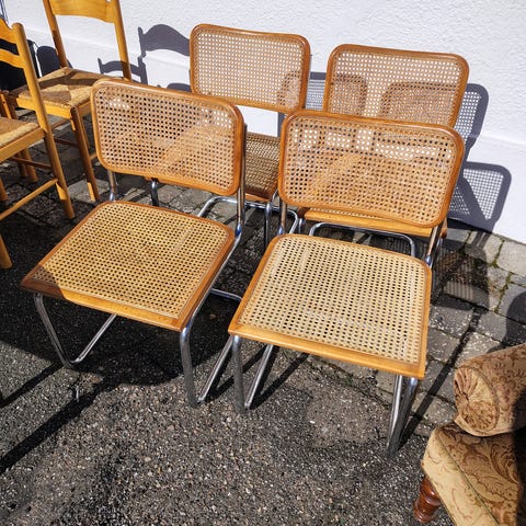 Udført på forkromede stålstel med fransk flet på sæde og ryg. Super klassisk design som har trendet flere gange siden de først blev tegnet.