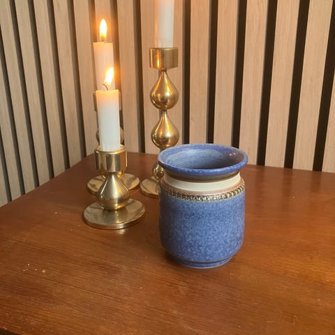 Ca. 11,5 cm. høj, og ca. 6 cm. i diameter.